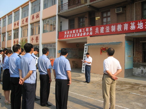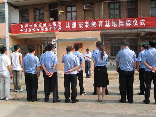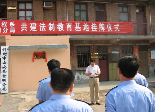 6月4日下午,交通工程系与开封市公安局金明分局共建法制教育基地挂牌仪式在金明分局办公楼前隆重举行,学院领导王卫东、茹正波出席,交通工程系党总支书记孙天星、副书记杜广平、分团委书记焦东良及学生干部20余人参加了挂牌仪式。金明公安分局局长张航生、政委李晓虎、副政委刘亚军、副局长赵广亮、韩胜利、指挥室主任段政、西郊派出所教导员周沖等领导及相关干警参加了挂牌仪式。挂牌仪式由交通工程系党总支副书记杜广平主持。