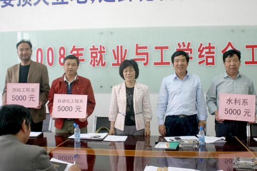 最后,刘宪亮院长、刘紫婷副院长为在工学结合工作中积极主动、组织得力、成效显著的水利系、测绘工程系、自动化工程系三个系部各颁发5000元奖金,用于奖励工学结合工作中成绩突出的教师和学生。