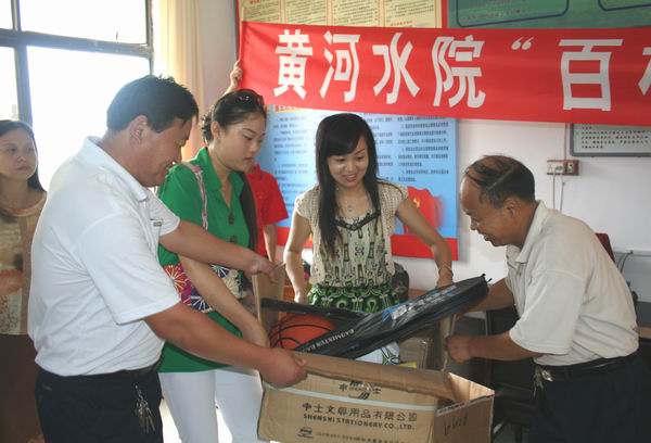 志愿服务团首先向开封县城关镇范庄的贫困学生捐赠了书包文具、生活用品等。范庄村委会主任对我院的关怀与帮助表达了深深的谢意:“你们不仅为我们送来了学习文具,更送来了人间真情,社会关爱和美好祝愿!”