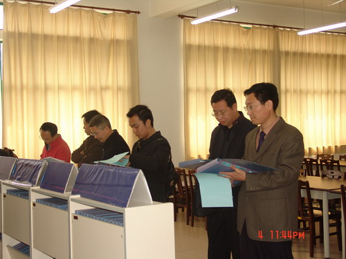 随后,教务处、示范办、人事处等相关部门负责人与客人进行了座谈和对口交流。之后,考察团参观了评建工作会场、展览室、资料室及学生餐厅、教学楼等。