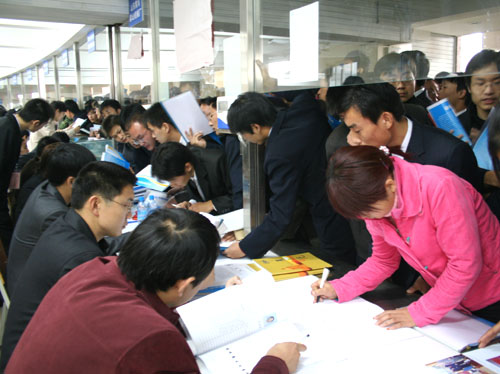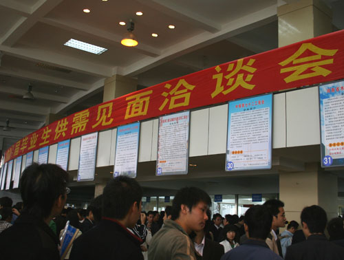 中国水利水电第三工程局主管招聘的负责人告诉记者:“我们已经是第三次参加这个招聘会了,去年我们招聘了50名学生,他们的素质很高,在单位干的很出色。今年因为单位名额限制,但是我们还打算招聘20名学生。”