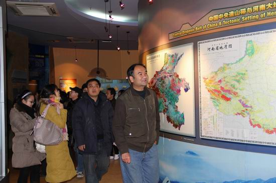 第一站,教师们来到河南省地质博物馆。博物馆内设有地球厅、恐龙厅、生物演化厅、古象厅、矿产资源厅、地质环境厅、矿物厅;馆外设有矿石林、恐龙雕塑等。在参观过程中,教师们了解了亚洲体腔最大最重的恐龙,世界上最小的窃蛋龙,世界上最早的银杏果化石等河南各种类的矿石、岩石标本,国内和部分国家矿物晶体和观赏石标本。