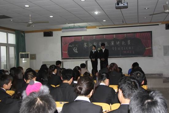 为庆祝中国共产党成立90周年,加强入党积极分子的党性教育。11月7日下午,旅游系在东校区东综101教室举办了主题为“青春凝聚在党旗下”的第30期党校演讲比赛。出席本次比赛的嘉宾有旅游系分团委书记王崇景、辅导员王忠伟、逯祥渠和学生会部分委员。我系本期入党积极分子到场观看了比赛。王崇景、王忠伟、逯祥渠以及学生会干部刘利宾、纪璐佳同学担任比赛的评委。