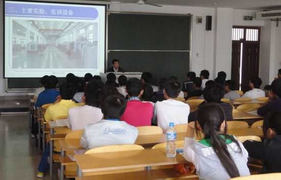 9月20日下午,机电系6个专业的教研室主任分别带领各专业教师,对2011级新生从人才培养方案、师资队伍组成、专业课程设置、就业方向、个人成长规划等方面进行了专业介绍,通过多媒体课件的生动和直观讲述,受到了广大新生的好评。随后,全体新生又参观了机电系所有的实训场所。