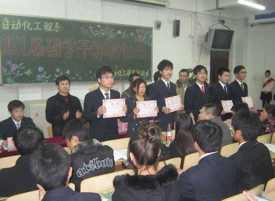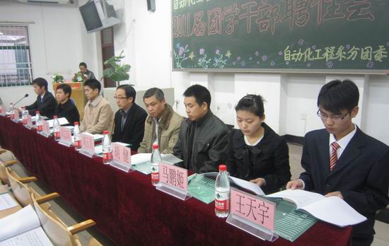 11月30日下午,自动化工程系2011届团学干部聘任大会在教学楼2102室召开,院团委书记周志琦、自动化工程系党总支书记杜广朝、副书记商坤、系主任刘玉宾、副主任胡健及学工办全体教师出席此次大会。