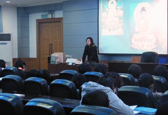 11月26日,艺术系在东校区综合楼学术报告厅举办了“佛学与人生智慧”讲座。主讲陈洁为艺术系同学们作了精采的讲说。