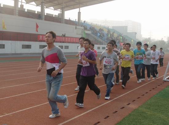 上午9点半,系党总支副书记刘广社宣布比赛正式开始。本次运动会分年级设立比赛项目。2008级全体在校生分为十轮进行田径比赛,男生为5公里,女生为2公里;2009级在校班级分班进行拔河友谊循环赛;2010级在校班级除了为学长们加油助威以外,还举行了羽毛球比赛、贴烧饼等趣味活动。