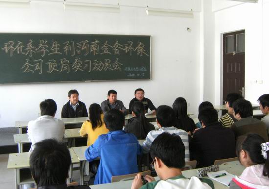 10月15日上午,环化系在教学楼5405室召开赴河南金谷环保设备公司顶岗实习学生动员会,为即将到河南金谷环保设备公司顶岗实习的08级环境监测与治理技术、电厂化学和工业环保与安全专业23名学生送行。环化系主任李党生、系党总支书记陈志强参加了动员会,动员会由系分团委书记王振强主持。