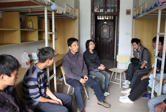 由于临近国庆长假,9月22日中秋节期间,测绘工程系2010级新生大部分都没有回家。考虑到新生刚经过军训,对学校环境还不是很熟悉,9月22日上午,测绘工程系党总支副书记刘广社带领王小美、齐建伟两位辅导员,深入宿舍看望新生并与他们座谈。