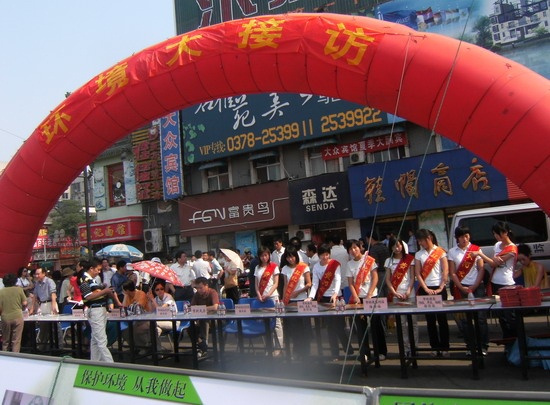 6月5日是第三十九个世界环境日,环化系学生干部和环保协会会员20多人在该系分团委书记王振强的带领下,参加开封市环保局举办的“纪念6.5世界环境日”活动,在鼓楼广场向市民开展了丰富多彩的宣传教育。