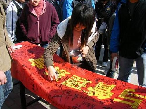 为进一步加强安全教育和安全管理工作,提高广大师生的安全意识和自我防范能力,建设和谐平安的校园,5月21日上午,管理系安全教育条幅签名仪式活动在扬帆帆路举行。系分团委书记邹新忠、辅导员徐猛、刘志刚及系全体学生参加了签名活动。