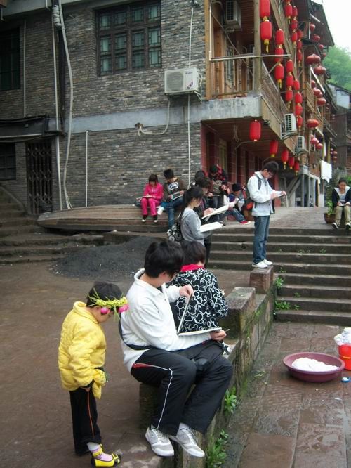 为了丰富实践教学内容,4月7日下午,艺术系09级视觉艺术专业38名学生在专业教师周洪军、周瑶带领下,开始了10天的湖南凤凰古城艺术采风之旅。