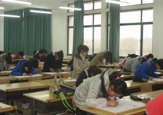 此次选拔赛共分为两个部分:手工绘图和CAD制图。手工绘图选拔赛在教学楼7212室和7210室进行,下午CAD制图比赛在土木系机房进行。紧迫的时间,紧张的气氛,比赛中同学们都积极准备,认真做题。土木系领导和部分教师莅临比赛现场,并对选手进行了现场指导。