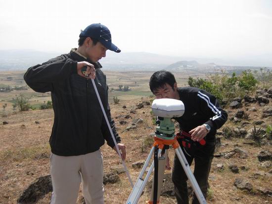 1月1日,当大家都还沉浸在新年的喜悦之中,援建测量队的队员们已经开始了GPS控制网的测量工作。一大早,测量队带队周建郑教授及北京国电李少朋工程师带领六名测量队员来到测区进行了GPS静态测量工作。由于该风力发电厂位于埃塞俄比亚的第二大城市纳兹瑞特市区西北约五公里的山梁上,许多队员都出现了强烈的高原反应,但大家还是咬牙坚持完成了任务。