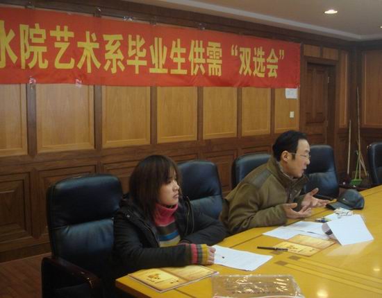1月11日下午,艺术系07级毕业生供需双选会在东校区行政楼二楼会议室如期举行,艺术系部分毕业生与前来的企业顺利完成了签约。