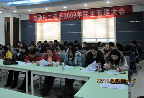 在庄严的国歌声中,自动化系首届第八次民主管理大会开幕。大会认真听取了系主任刘玉宾做的《自动化工程系2009年工作报告》和系副书记、分工会主席商坤做的《自动化工程系2009年分工会工作报告》。报告回顾并总结了自动化工程系一年来所做的各项工作,并对2010年的工作进行了布置。