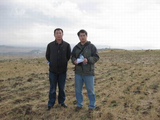 测绘系书记周建郑和北京戡测设计院李少朋在在风电场踏勘