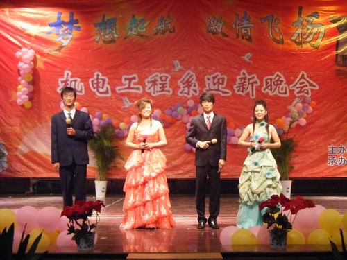 迎新晚会在一曲优雅的吉他合奏声中拉开序幕。首先引爆全场的是机电系60级毕业生、院工会康禹门老师的陕北味民歌《东方红》。这首原生态《东方红》歌唱了我们伟大的党、伟大的祖国,也唱出了机电系师生对祖国的美好祝愿。随后,优雅的萨克斯独奏《童年》、交通系助演的歌伴舞《天竺少女》、组成“机电工程系欢迎你!”的《六人街舞》、大一新生表演的《三句半》、“机电系版”的小沈阳《二人转》一一登台亮相,展现了机电学子的青春活力和良好的精神风貌。机电系分团委书记薛冰老师一首深情的《忘情水》再次点燃了全场的激情,表达出了机电系师生对大一新生的诚挚欢迎。