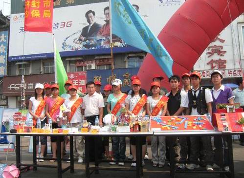 6月5日,环化系组织系学生干部和环保协会会员20多人,由分团委书记王振强带队在鼓楼广场参加了开封市“纪念6.5世界环境保护日活动”。