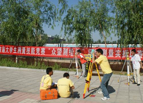 本次导线测量技能竞赛是“中纬杯”河南省首届大学生测量竞赛分项目,由河南测绘学会主办,我院承办。共有河南理工大学测绘学院南方测绘代表队、郑州测绘学校南方测绘代表队、河南工程学院煤田代表队等9支代表队分三批参加了比赛。参赛选手现场进行仪器安装,调整观测进行导线测量作业。