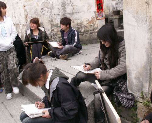 3月28日,社科部环境艺术设计及视觉艺术设计专业学生一行 60多人到达世界物质文化遗产保护地安徽宏村,开始为期十天的风景写生和艺术考察。
