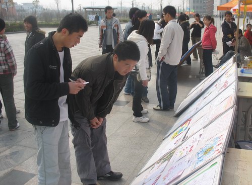 来自全院各个系部的近90份手抄报作品在扬帆路展出,由观众不记名投票评选出5份作品。工作人员在进行宣传手抄报设计大赛的同时,对观众的评选过程进行监督。展览现场,观众纷纷驻足参观,热情参与投票,认真仔细地评选优秀的作品。下午三点左右投票环节基本结束。