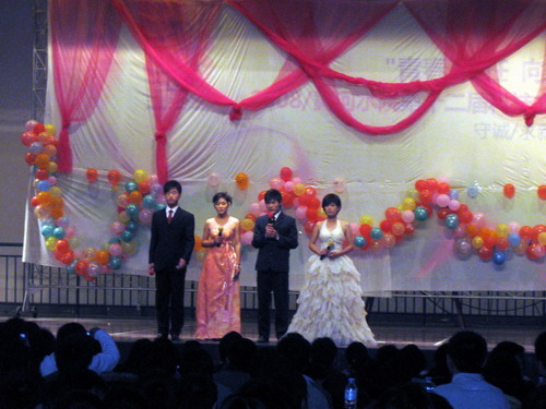 11月30日下午5点10分,由水利系主办、台北风情婚纱摄影公司支持的水利系“台北风情” 杯青春风采综艺汇演在风雨球场举行,出席活动的有水利系党总支书记来卫东、副书记薛建荣,各年级辅导员及台北风情婚纱摄影公司经理王飞。