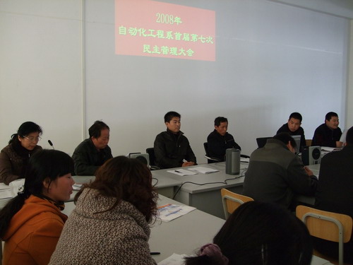 会议听取了系副主任胡健做的《自动化工程系2008年工作报告》及副书记商坤做的《自动化工程系2008年分工会工作报告》,两份报告回顾并总结了该系一年来所从事的各项工作,并对2009年的工作进行了部署。杜广朝书记为会议致辞。此次民主管理会体现了教职工充分行使民主管理、民主监督和民主决策的权利,大家积极参与、热烈讨论,为院系的发展谏言献策。
