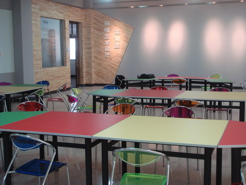 该实训室共分学生训练区、学生交流区、技术或实物展示区、教学区等,体现了专业的特点。作为环境艺术设计专业和视觉传达艺术专业学生专用实训场地,可容纳3个年级150名学生的实训实习需要,能够为家具设计、展示设计、灯具设计、室内设计等课程提供模型制作及课程汇报使用,同时还可以提供对社会开放、宣传校园文化、展示学习成果使用。