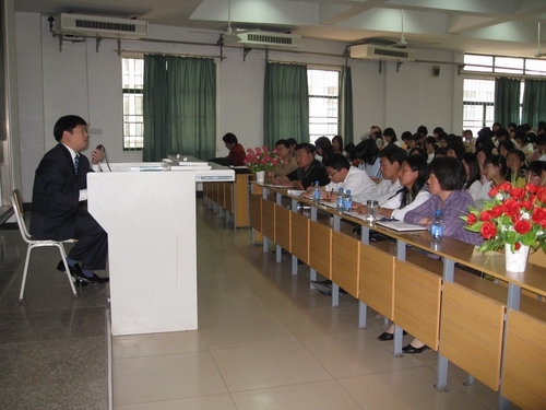 5月19日下午,外语系邀请校企合作单位平煤集团开封东大化工有限公司外贸部陈同勋部长做了题为“如何成为一名合格的外贸人才”的专题讲座。外语系全体师生和管理系部分学生共计300余人参加了此次讲座。