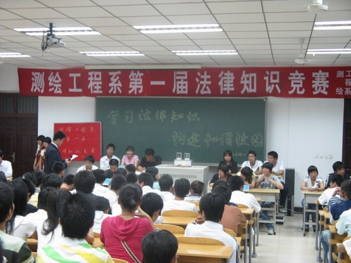 5月15日晚,测绘工程系举办了第一届法律知识竞赛。参赛选手共分6个代表队,竞赛内容涉及到交通法、人民财产保护法等,目的在于宣传和普及法律知识,为同学们提供了一个了解法律知识的平台!
