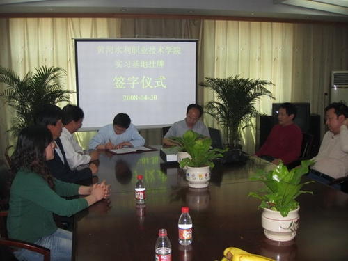 2008年4月30日,在漯河河南水利基本建设工程质量检测中心站,水利系与该站校企合作协议签订仪式隆重举行。水利系主任刘纯义、副书记薛建荣和有关老师,该站站长魏宪田和部分职工参加了签字揭幕仪式。