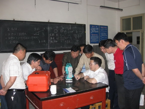 随着示范性建设的不断深入,学院为该系配备了许多新的设备仪器,但不少教师不会操作,无法胜任教学工作。为了满足教师的要求,水利系专门和仪器供应商联系,利用5月2—3日两天时间举办了全站仪培训班。