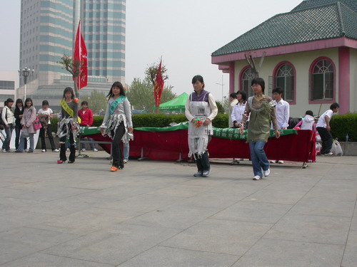活动共分环保签名、才艺展示、手工艺品展示、环保服装秀四个环节。签名活动吸引了众多市民和学生的积极参与,他们在写有“倡导生态文明 喜迎绿色奥运”的条幅上,纷纷签下了自己的姓名,表达了对绿色奥运的支持。随后的才艺展示和手工艺品展示中,环保志愿者们用牙签、筷子、饮料瓶等废弃物制作的工艺品向人们展示了变废为宝的巧招。最后的环保服装秀环节把现场的气氛推向了高潮,这些用废弃的报纸和塑料袋制成的服装充分体现了当代大学生保护环境的意识,也表达了学生们建设美好绿色家园的愿望。