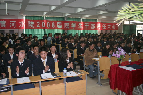 春风送爽,万象更新。3月21日下午,2008届院学生干部换届任命大会在教学楼6302隆重召开。院党委副书记、纪委书记王卫东教授,院团委书记周志琦老师,院学生处副处长朱焕立老师,院团委副书记谷献晖老师,院团委胡楠老师,及各系部分团委书记和学生干部代表共280余人参加了大会。
