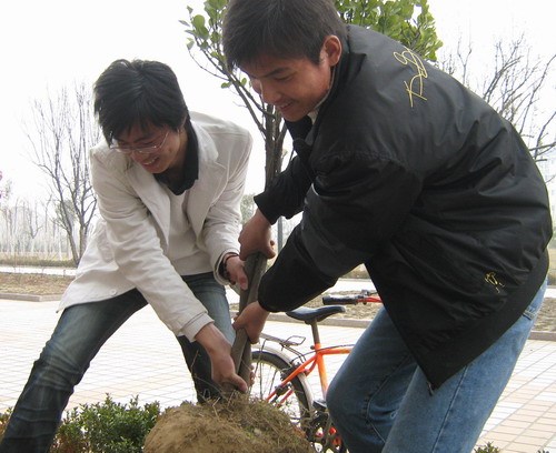 参加绿化活动的一名学生说:“去年个别在校内实习的学生将测量仪器放在一号楼前的草坪上,这里的草坪已经露出大片黄土,极不美观,我们把8棵幼苗补种在上面,希望以后实习的同学多留心,不要破坏周边环境。”同学们表示,希望通过参与绿化活动提高自身的环保意识,进而以身作则带动周围同学爱护身边一草一木。
