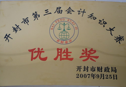 2007年9月,在第三届全国会计知识大赛开封赛区的比赛中,我院财经系注会专业的陆发和王欢欢两名同学参加了第二轮决赛,并取得优异成绩。我院也赢得了开封市财政局授予的优秀组织奖和集体优胜的荣誉称号。