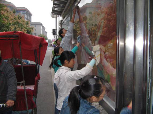 2007年9月29日上午,为响应开封市 “创三城”活动的号召,黄河水院水利系50多名青年志愿者冒雨走上街头打扫卫生。上午9点,在水利系分团委书记李颖的带领下,青年志愿者们参加到团市委的统一安排义务劳动活动中。在劳动现场,同学们个个热情高涨不怕脏、不怕累,清除街头小广告,打扫卫生死角,擦拭广告牌面上的灰尘,拣起街道上的废纸垃圾等,为了让古城的街道更干净,同学们使出了浑身解数。一会,天空下起了小雨,但同学们的热情丝毫没有退缩,仍然坚持在劳动现场,一个个火热的劳动场面在飘着细雨的古城中形成了一道亮丽的风景。