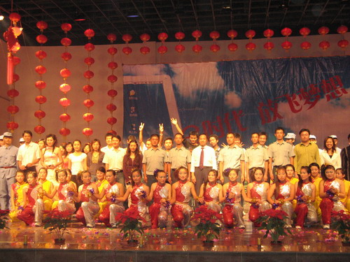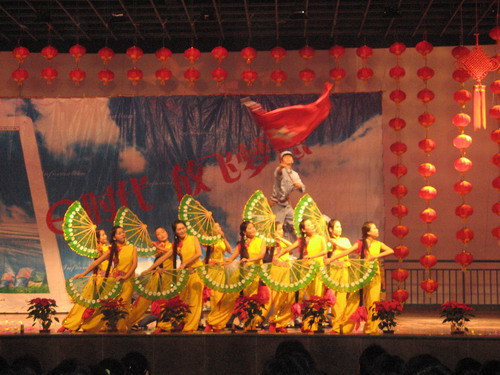对于刚刚军训完毕的2007级新生来说,这是他们离开亲人的第一个节日,同样也是一个充满温暖与激情的节日。7点整,晚会在欢快的气氛中拉开了序幕,烟花齐放,渲染了浓厚的节日气氛。樱花舞的旋律在光彩夺目的烟花中慢慢响起,同学们伴着欢乐的旋律纷纷起舞,他们优美的舞姿博得阵阵欢呼。一曲作罢,辅导员和军训教官也献出了自己精心准备的节目。“校园歌曲组合”﹑“中华武术” 等节目将会场气氛推向高潮。