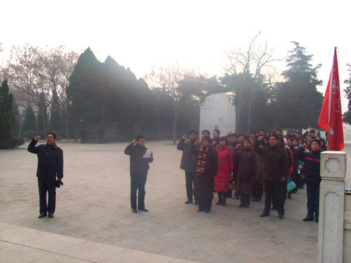 来到焦裕禄烈士陵园,师生们为焦裕禄烈士敬献花圈,并鞠躬哀悼,系主任张辉带领党员们在焦裕禄烈士陵墓前重温了入党誓词。