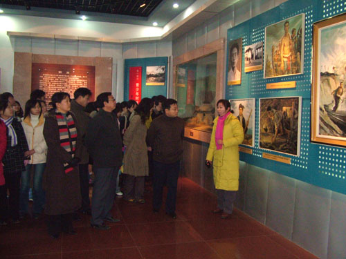 之后,馆长张继焦带领财经系党员们参观了焦裕禄生平事迹纪念馆,并为大家详细的讲解了焦裕禄同志贫困的童年生活,受党的号召走上了革命道路的过程,和把自己的青春和生命奉献给兰考,领导当地人民治理严重的风沙、内涝、盐碱等事迹。参观中,当看到焦裕禄同志遗留下来的衣服、被褥上面打满了补丁,大家都忍不住的热泪盈眶,焦裕禄同志艰苦朴素、为人民的幸福生活奉献一切的精神深深打动了在场的每一位同志。