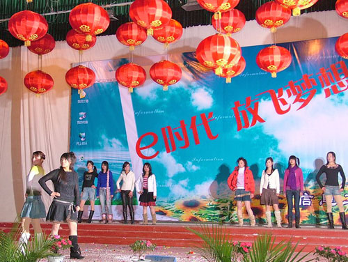 晚会在大合唱《放心去飞》中拉开序幕。具有浓郁校园特色的小品《网友》、歌曲联唱《校园早晨》、《同桌的你》、《栀子花开》表现了校园生活的无限魅力;小品《新版梁祝》、《水浒笑传》对古典小说的大胆改编,让同学们耳目一新;双簧表演《乐极生悲》、模特表演《时装秀》、歌曲《菊花台》等一个个精彩的节目,更是博得观众一次次热烈的掌声。