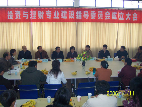 11月11日上午,财经系投资与理财专业建设指导委员会成立大会在新校区教学楼5507教室隆重召开,邀请中国人民银行开封市分行高级经济师胡天义先生、开封大学教授郭美英女士、泰康保险公司开封分公司总经理李慧芬女士、中国农业发展银行兰考支行行长付连晖先生、中国人寿保险公司龙亭分公司经理周淑芳女士、新时代证券公司中山路营业部经理时迎宾先生与会,共同探讨投资与理财专业的建设。