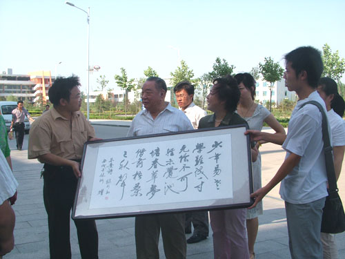 为感谢财经系青年志愿者长期以来为老干部提供的服务,6月16日下午,西城干休所的离休干部、原开封地委书记、85岁高龄的刘尚修老人和现干休所沈忠芹所长为我系青年志愿者送来两块纪念匾。