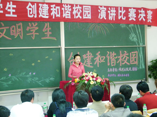 在两个多小时的比赛中,参赛选手纷纷上台慷慨激昂地抒发了自己对“争做文明学生,创建和谐校园”的理解和感想,从如何提高自身素质、做文明学生、构建和谐校园等方面阐述了自己的观点。不仅体现了学生们的主人翁意识和责任感,也展示了我院学生积极向上、甘于奉献的良好精神风貌。