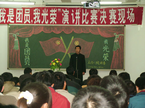 12月7日下午,由院团委举办的“我是团员,我光荣”演讲比赛在新校区教学楼2202教室举行。院领导王卫东到场为获奖学生颁奖。院团委、学生处等部门负责同志,各系部团总支书记、辅导员观看了比赛。