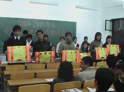 本次大会表彰了全系在2004-2005学年中涌现出来的15个先进集体和105个先进个人。荣誉证书颁发仪式后,信息工程系党总支副书记殷莺进行了讲话,对受到表彰的同学提出三点要求:一是要保持荣誉、树立形象;二是要谦虚谨慎、戒骄戒躁;三是继往开来、再创佳迹。随后,学生代表赵姣姣同学代表本次受表彰的全体同学发言,她表示一定要继续努力,不辜负老师和家长的寄托,踏踏实实,在以后的学习、工作中争取更大的成绩。