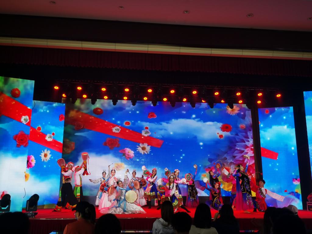 演出以一首大合唱《四渡赤水出奇兵》拉开帷幕。演出共设15个节目,艺术与设计学院歌舞表演专业师生表演歌曲《我的祖国》、舞蹈《少年志》、《多彩中国》、情景讲述《等待》、诗朗诵《黄河人》、器乐合奏《在希望的田野上》、四重唱《我爱你中国》、情景表演《我们毕业了》8个节目。黄河水院退休教师奉献小合唱《映山红》《我爱你中国》两个节目。开封歌舞剧院选送开场舞蹈《百花争艳》、快板《看升旗》、舞蹈《年年有余》、相声《百年辉煌》4个节目。演出在艺术与设计学院与开封歌舞剧院合作表演的歌伴舞《好儿好女好江山》落下帷幕。抑扬顿挫的旋律,精彩纷呈的故事,展现了浓浓的文化艺术气息。