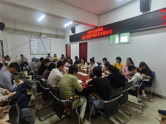 5月25日下午,金融与会计学院在SY5412会议室召开党史学习教育专题学习会,专题学习中国共产党改革开放新时期历史,全体教职工参加。学习会由院长宋建涛主持。