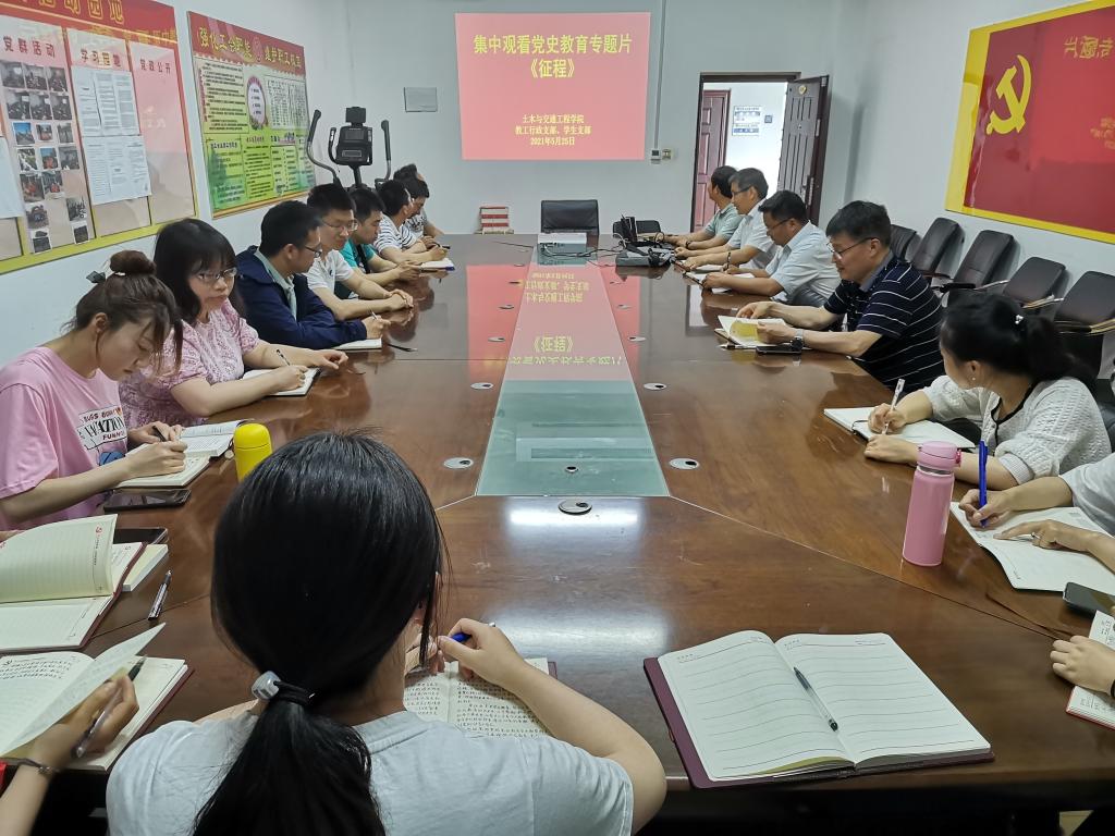 为进一步推进党史学习教育走深、走实、走心,做到规定动作不走样,自选动作出花样。5月25日下午,土木与交通工程学院教工行政党支部、学生党支部在SY5319会议室观看河南党史学习教育专题片《征程》。